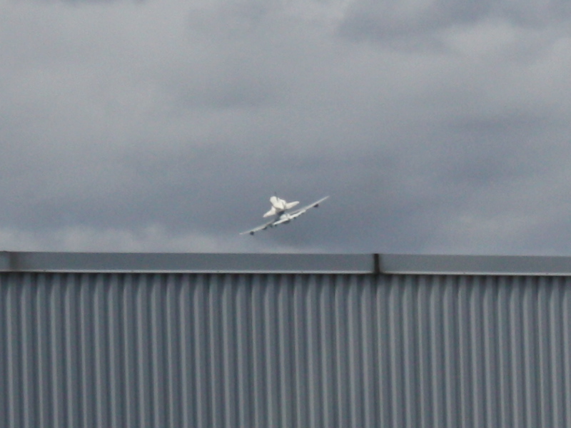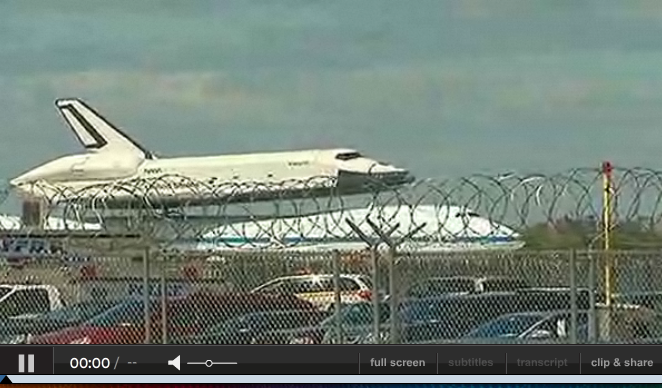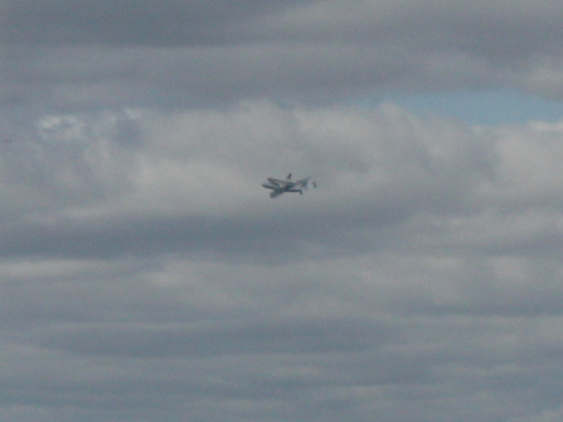 最初はネットでNBC NEWSの中継を見てたのですが、着陸体制になったなぁと思っていたら、次の瞬間、建物の上から現れたスペースシャトルを上に搭載した飛行機が、目の前を通り過ぎました。